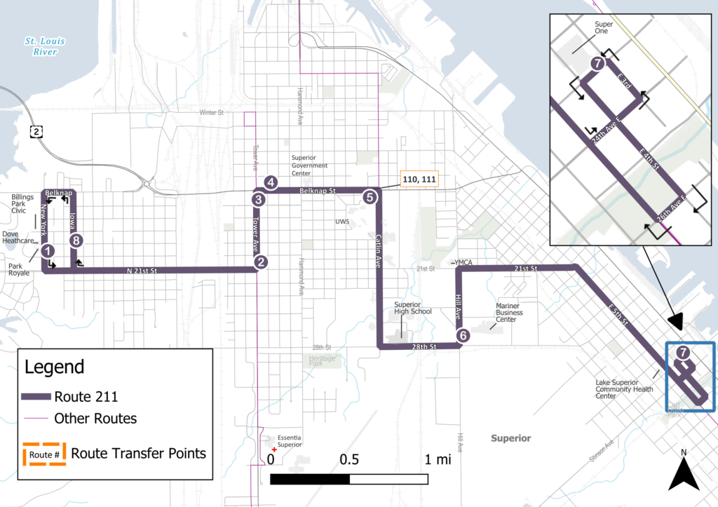 Route 211 will provide service to Billings Park and otherwise overlap the core of Route 111 (see map below). It will operate in a staggered fashion against route 111 timing (providing more reliable transfer options to 110. Initially, it will operate during just the peak service times, but offer 7-day service.